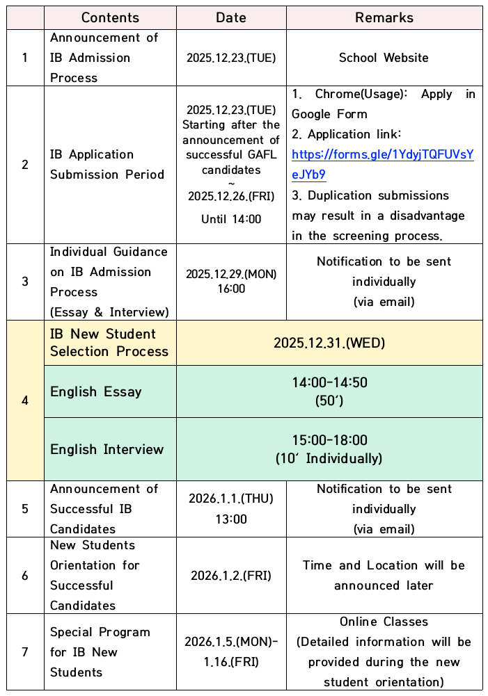2. Detailed Selection Schedule for 2026 Academic Year IB New Students