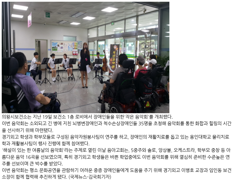 Uiwang City Public Health Center held a 'small concert' for disabled people on the first floor lobby of the public